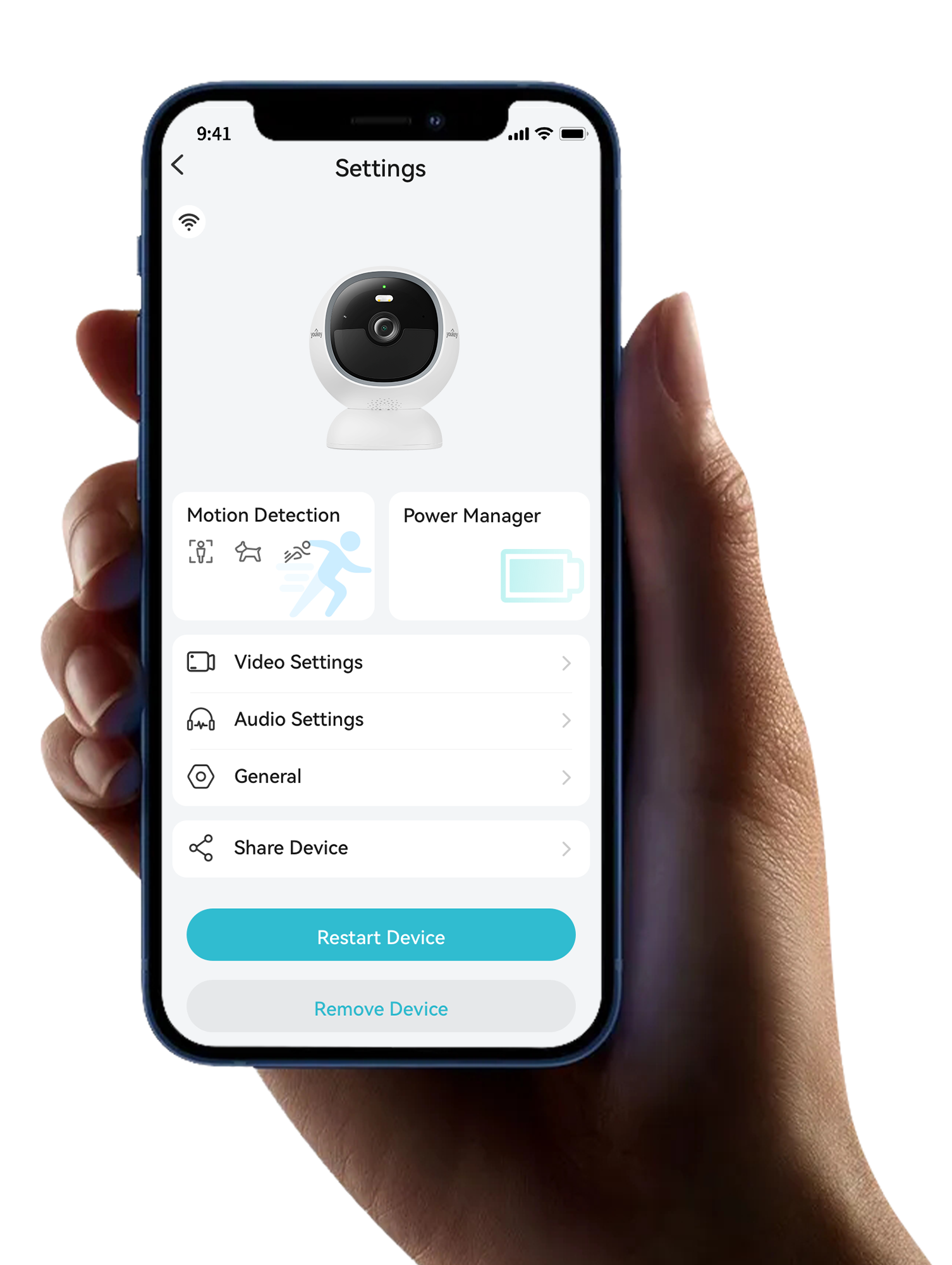 Easily control your camera anytime, anywhere with your phone. Set event detection type, recording quality and night vision, etc.