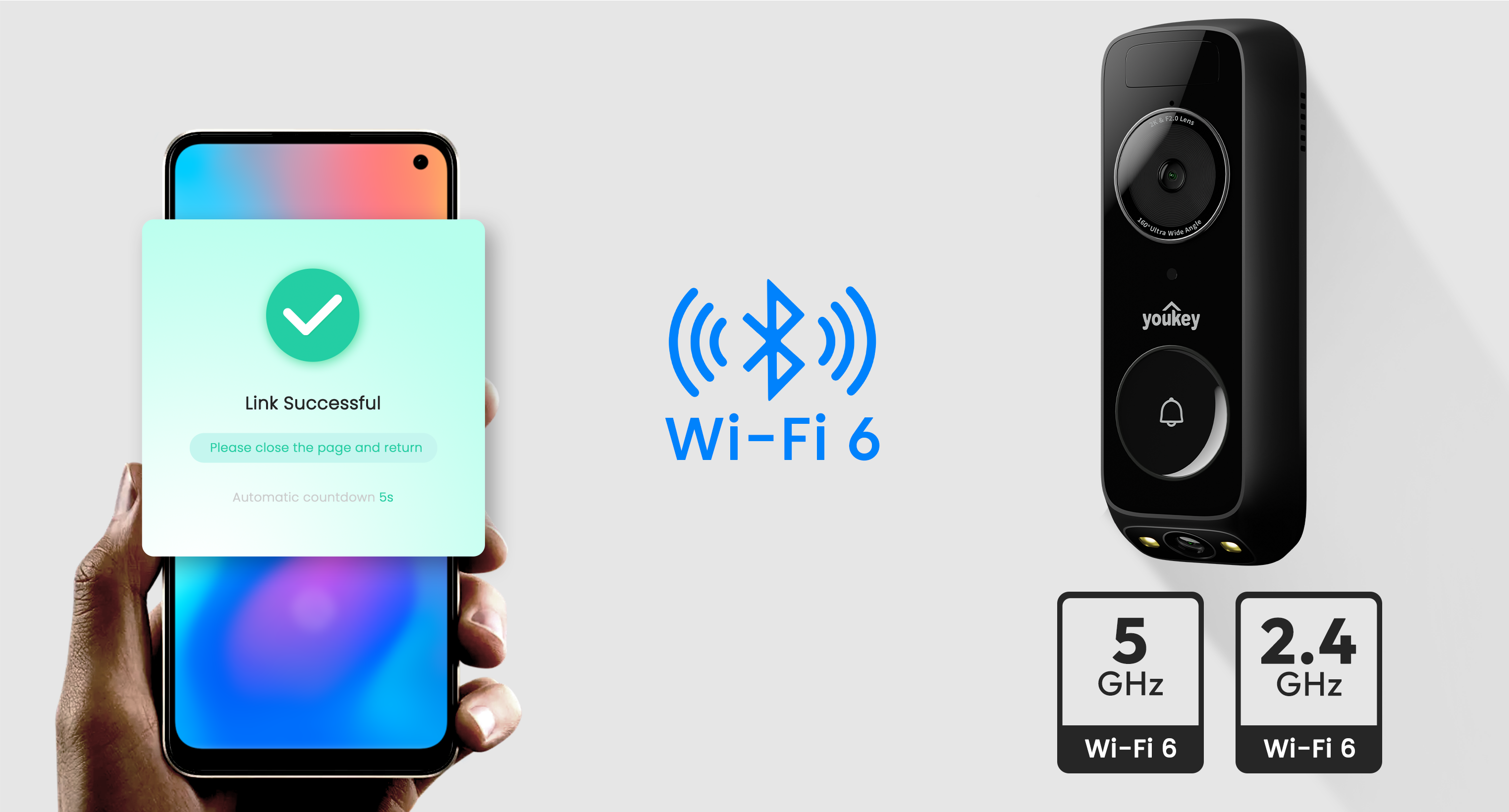 - Swift Setup: No more struggles with initial setup. With dual band WiFi 6 support and Bluetooth pairing, the Youkey video doorbell is ready for use in an instant. The introduction of WiFi 6 also enables stable connection and added data security.