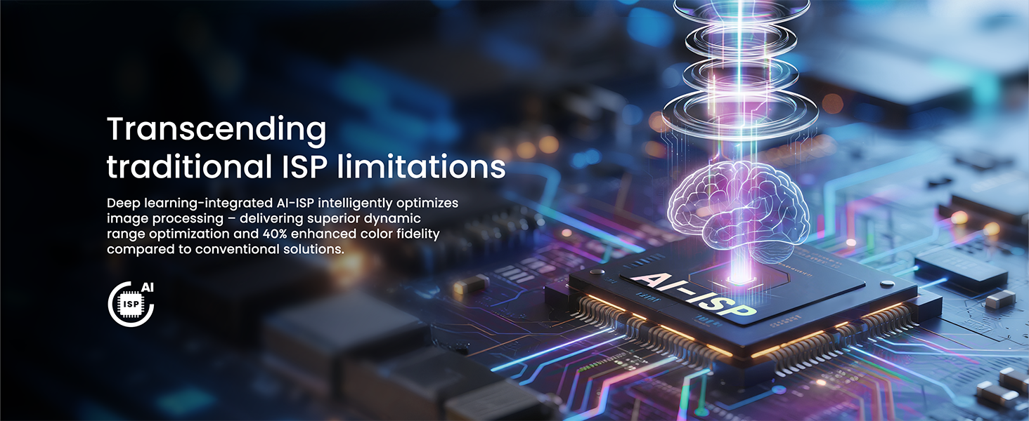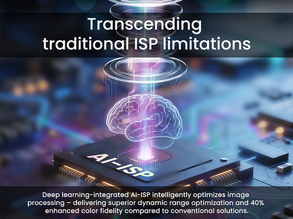 • AI Powered-ISP:  Transcending traditional ISP limitations, deep learning-integrated AI-ISP intelligently optimizes image processing – delivering superior dynamic range optimization and 40% enhanced color fidelity compared to conventional solutions.