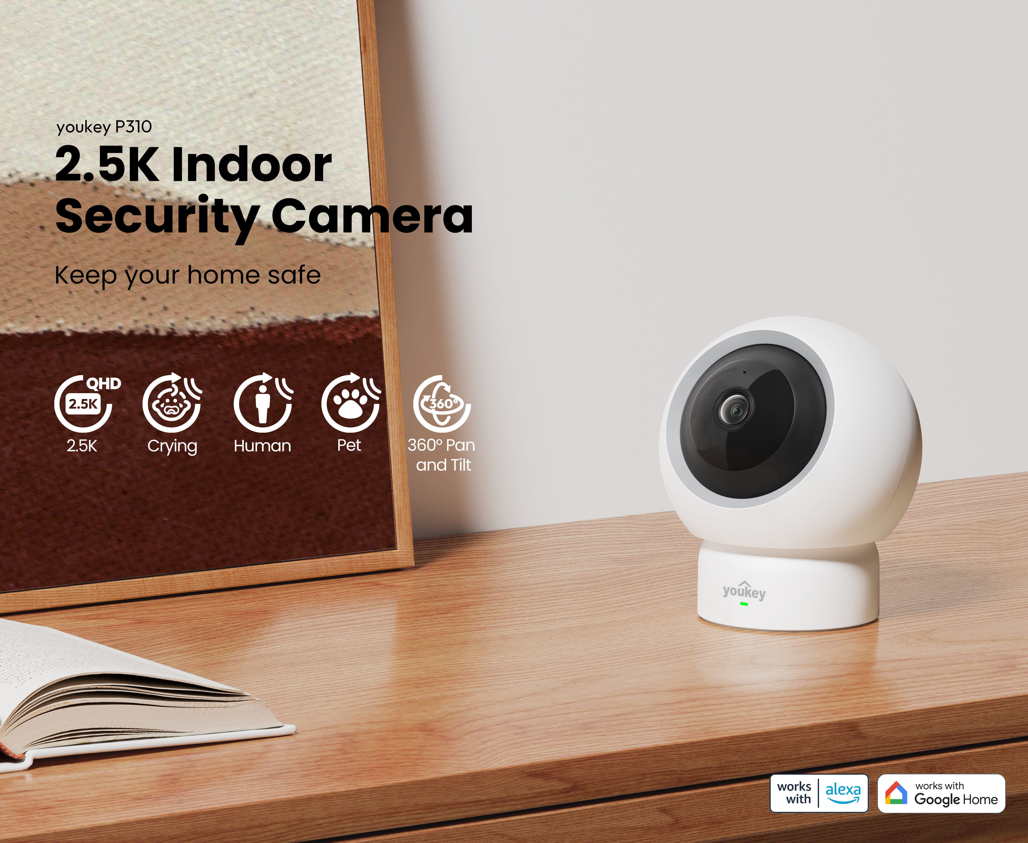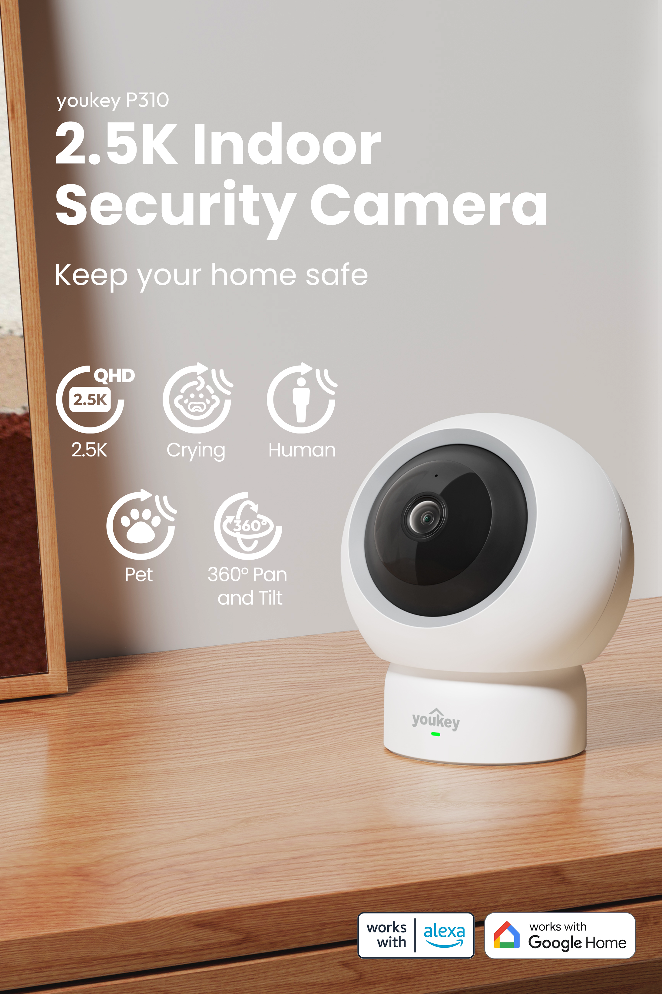 - Naturally Clear and Vivid Imaging: Youkey P310 indoor camera is designed with a 4MP sensor and F1.6 large aperture. With a team of over 10 years of image-tuning expertise, it blends hardware and software to deliver natural clarity and lifelike color.