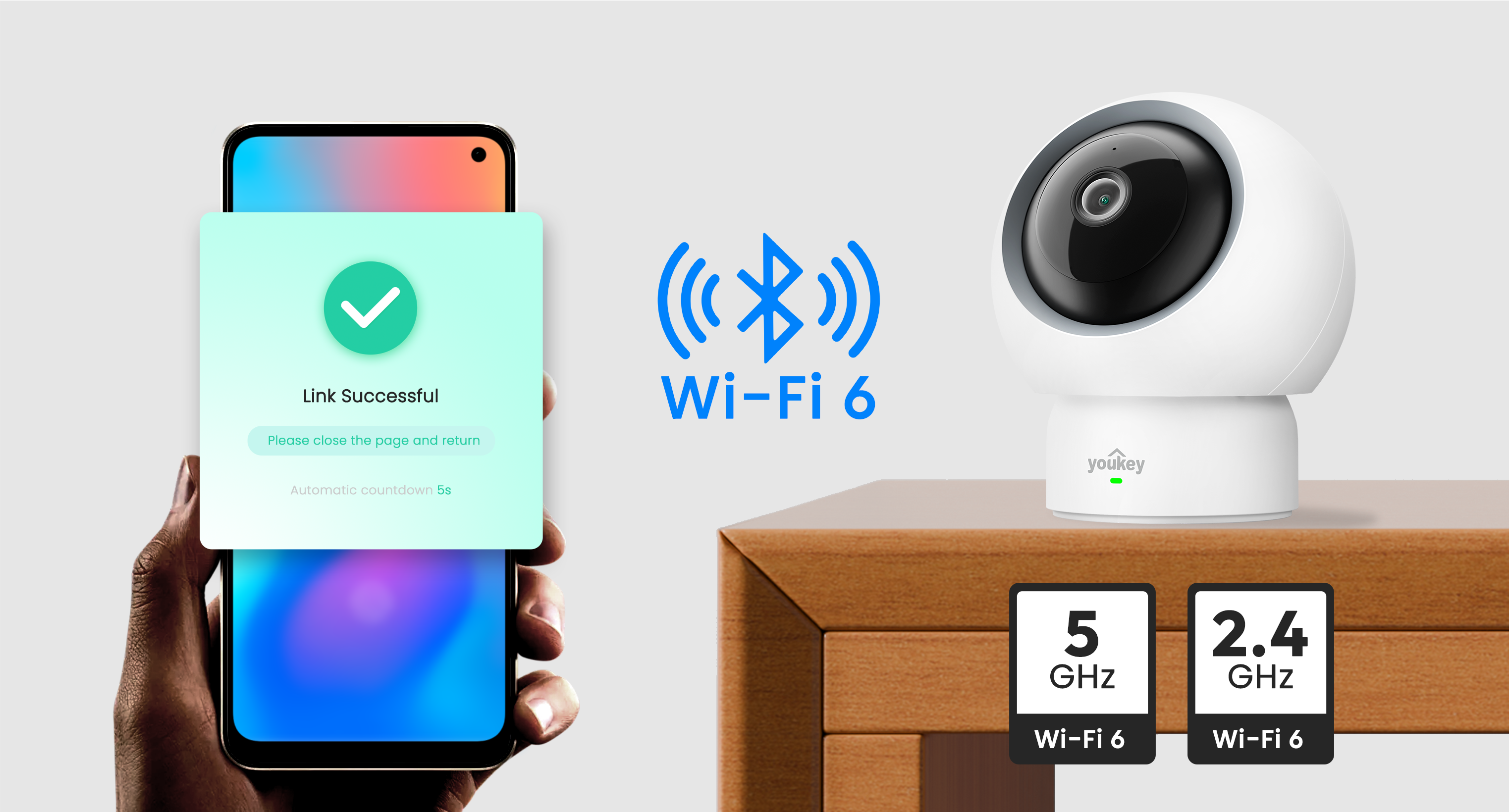 - Swift Setup and Low-latency Streaming: Dual-band support (2.4GHz & 5GHz) and Bluetooth pairing for hassle-free connection in 30 seconds. Youkey P310 home security cameras also come with WiFi 6 to deliver reliable connectivity and lag-free streaming.