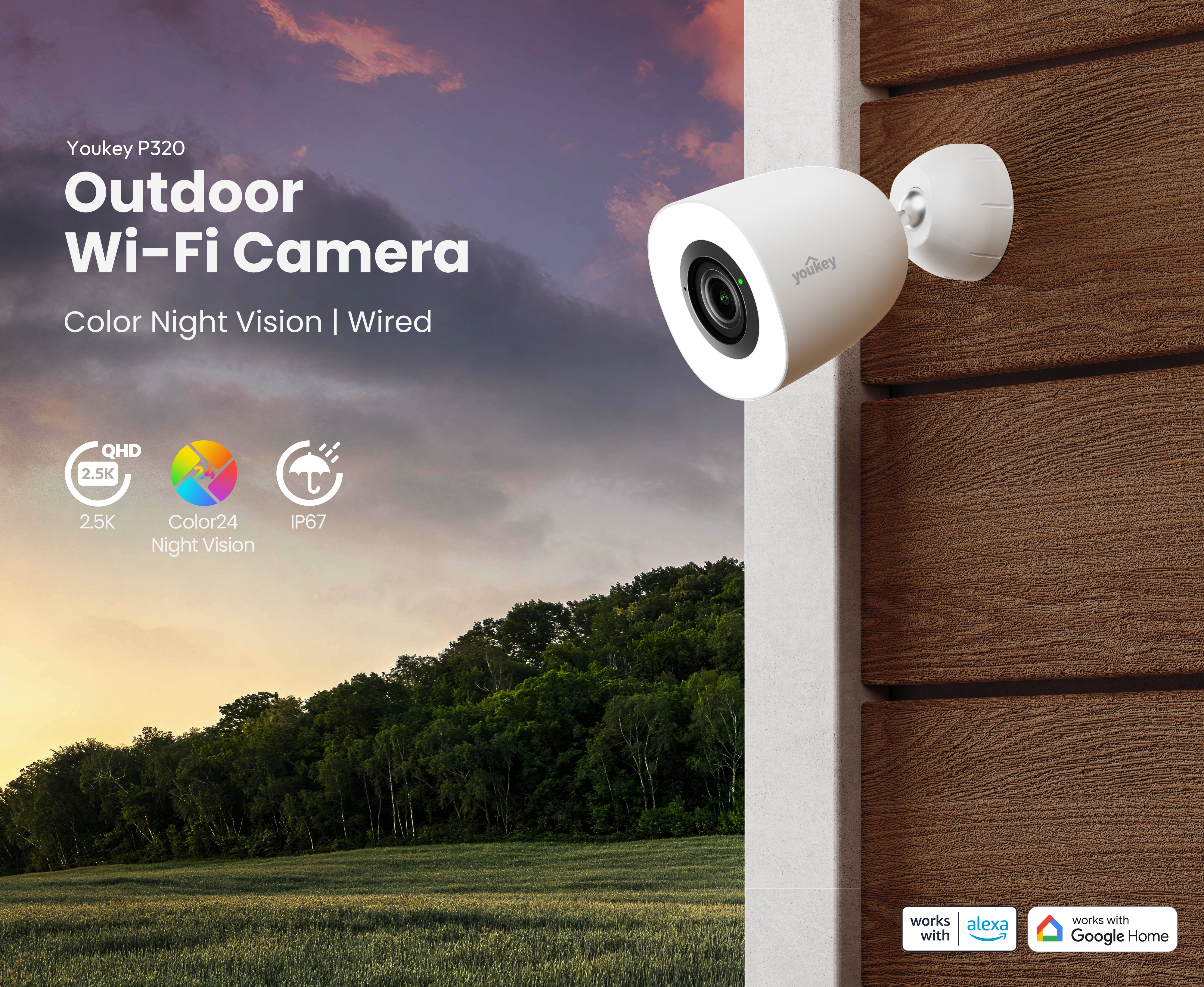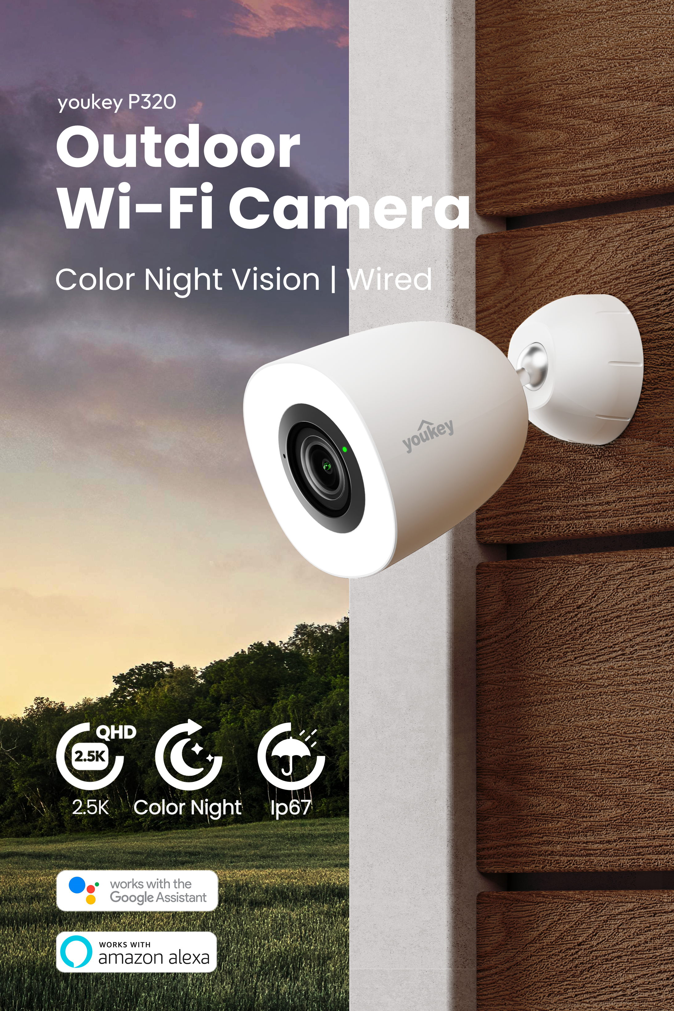 - See with Clarity Rain or Shine: With IP67 Weathproof, this Youkey outdoor camera can stand all weathers, plus with the 2.5K QHD resolution and 130° field of view, you can see more with improved clarity all year round.